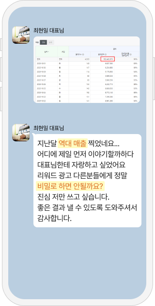 리워드 광고 시작 후 하루 매출 1700만원 달성