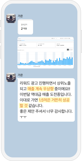 리워드 광고를 하면 매출이 오릅니다.